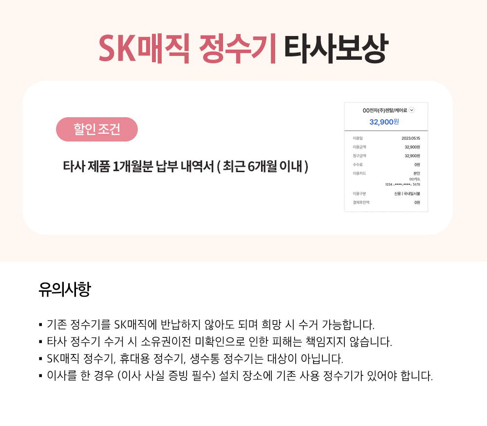 6년약정_타사보상 4개월필터발송,12개월방문 3개월 반값 10만원(면제) 면제 26,500 원 13,250 원 0 원