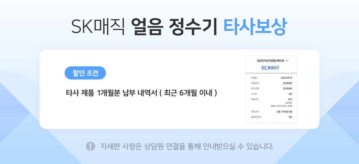 타사보상으로 SK매직 제품으로 얼음정수기를 선택했습니다. 얼음정수기는 처음 써보는거라 …